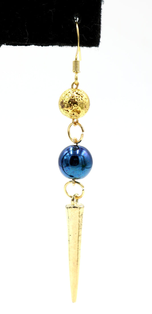 Elegant Punk Yellow Gold and Metallic Blue Spike Earrings