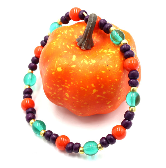Halloween Seed Bead Bracelet Boho Bracelets Handmade Glass Beads Stretch Bracelet Hail the Great Pumpkin King Inspired Gift 2021