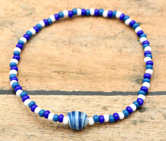 Ocean Swirl - Dark Blue, Blue, and White - Nautical Fun Women's Glass Stretch Bracelet