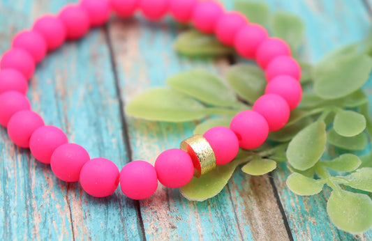 Hot Pink and Golden Sass Women's Yellow Gold and Hot Pink Beaded Stretch Bracelet by Monkey's Mojo