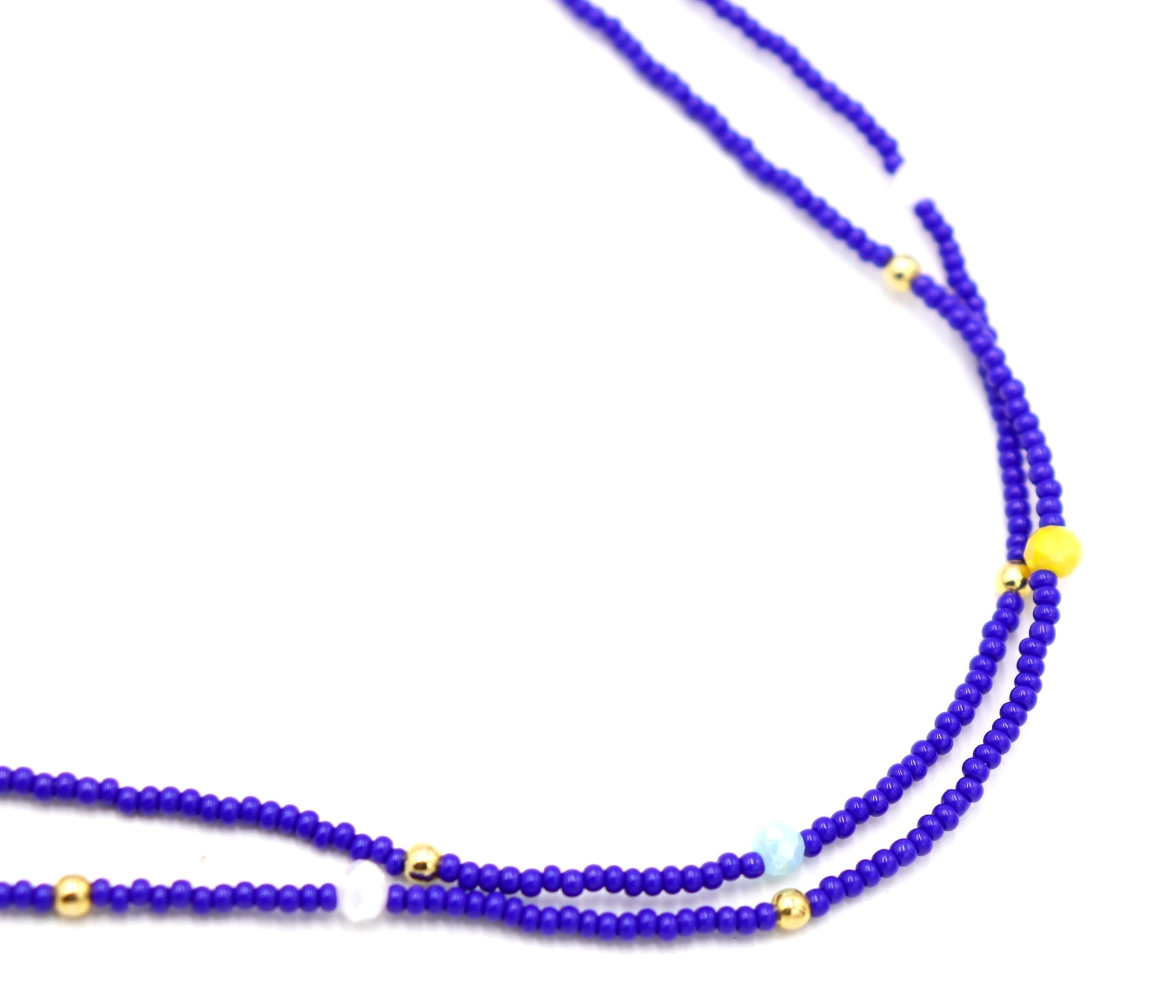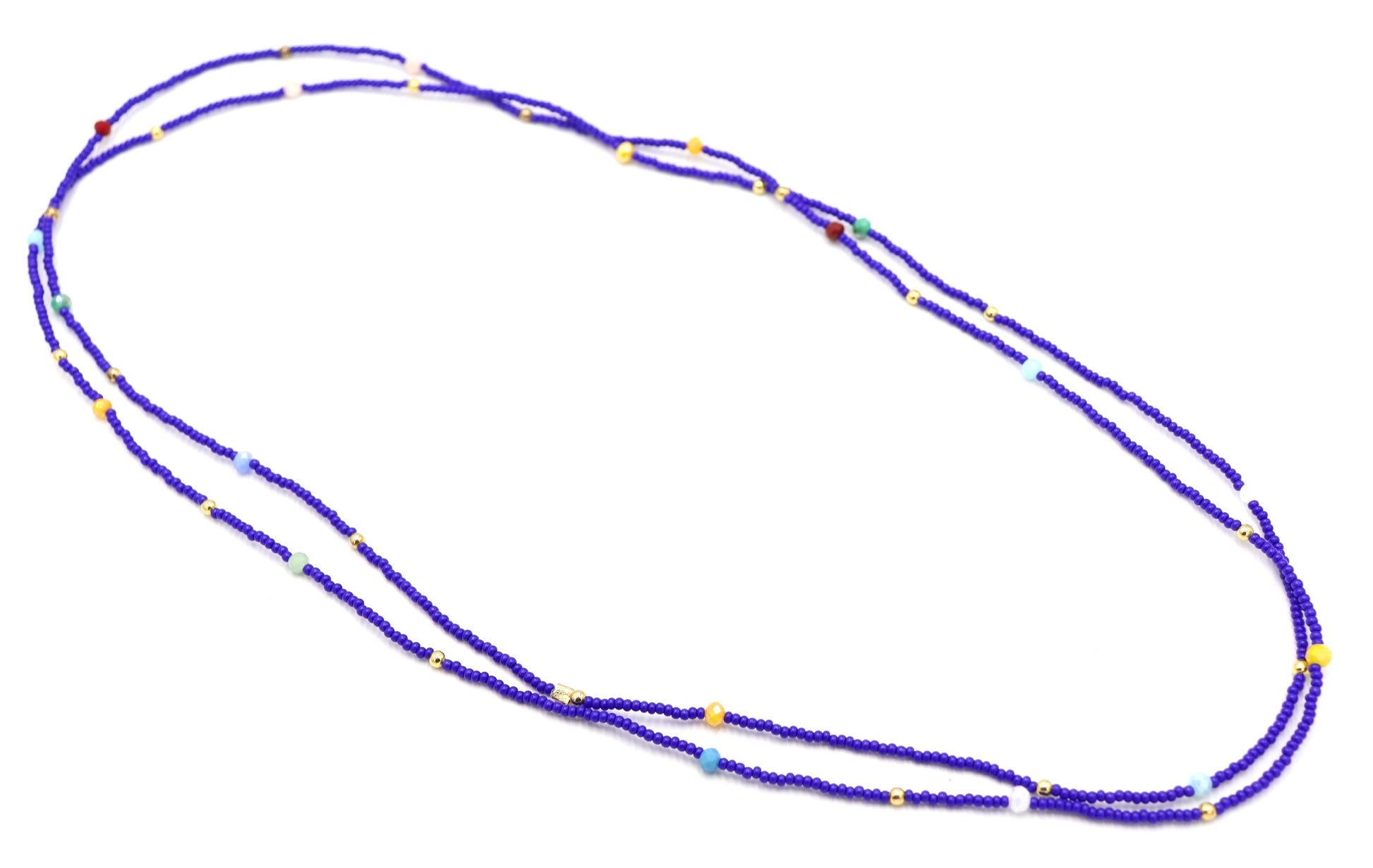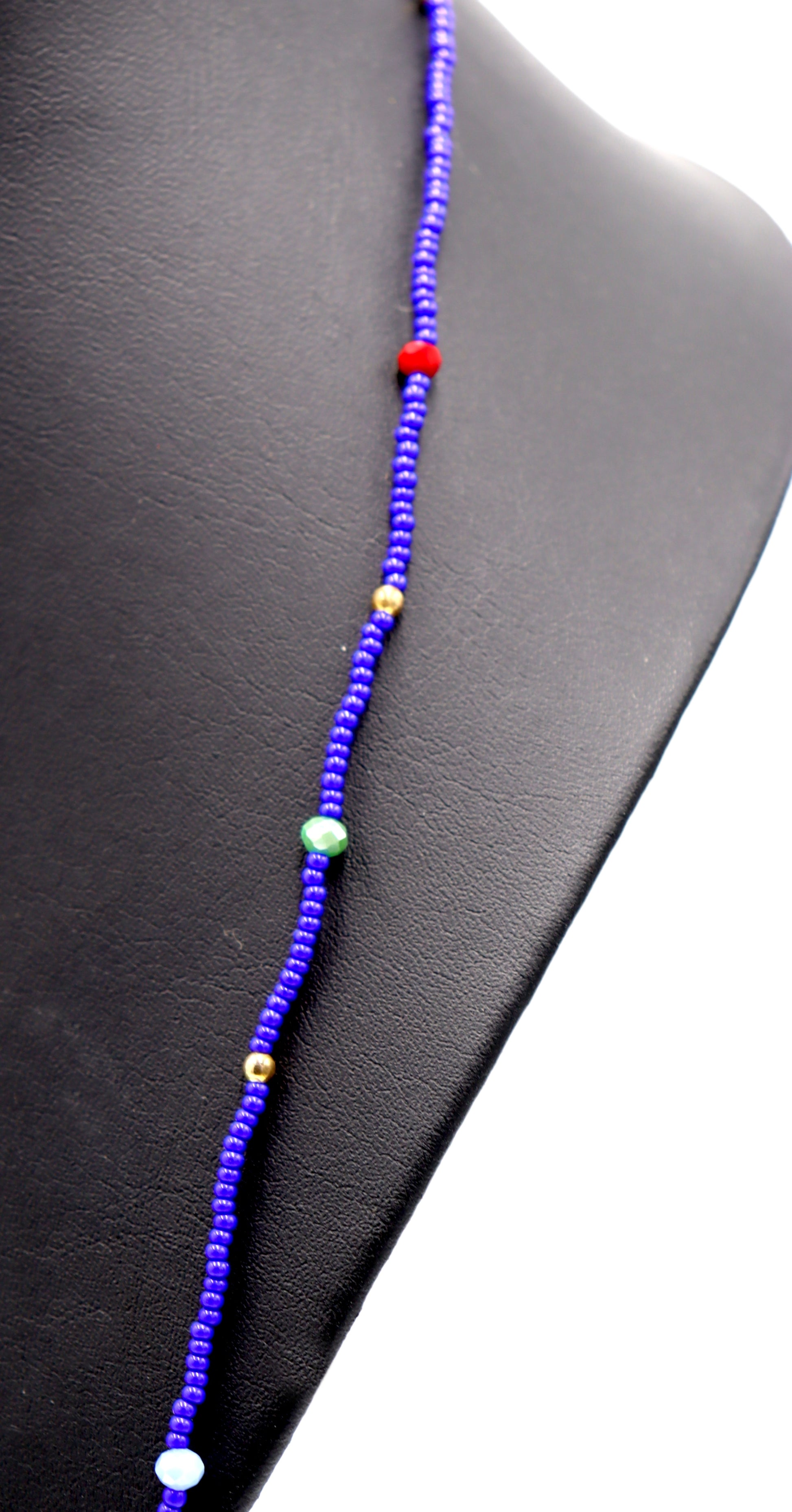 Blue Skies and Faceted Orbs of Colorful Light Approximately 52" Long Women's Royal Blue Long Glass Necklace by Monkey's Mojo