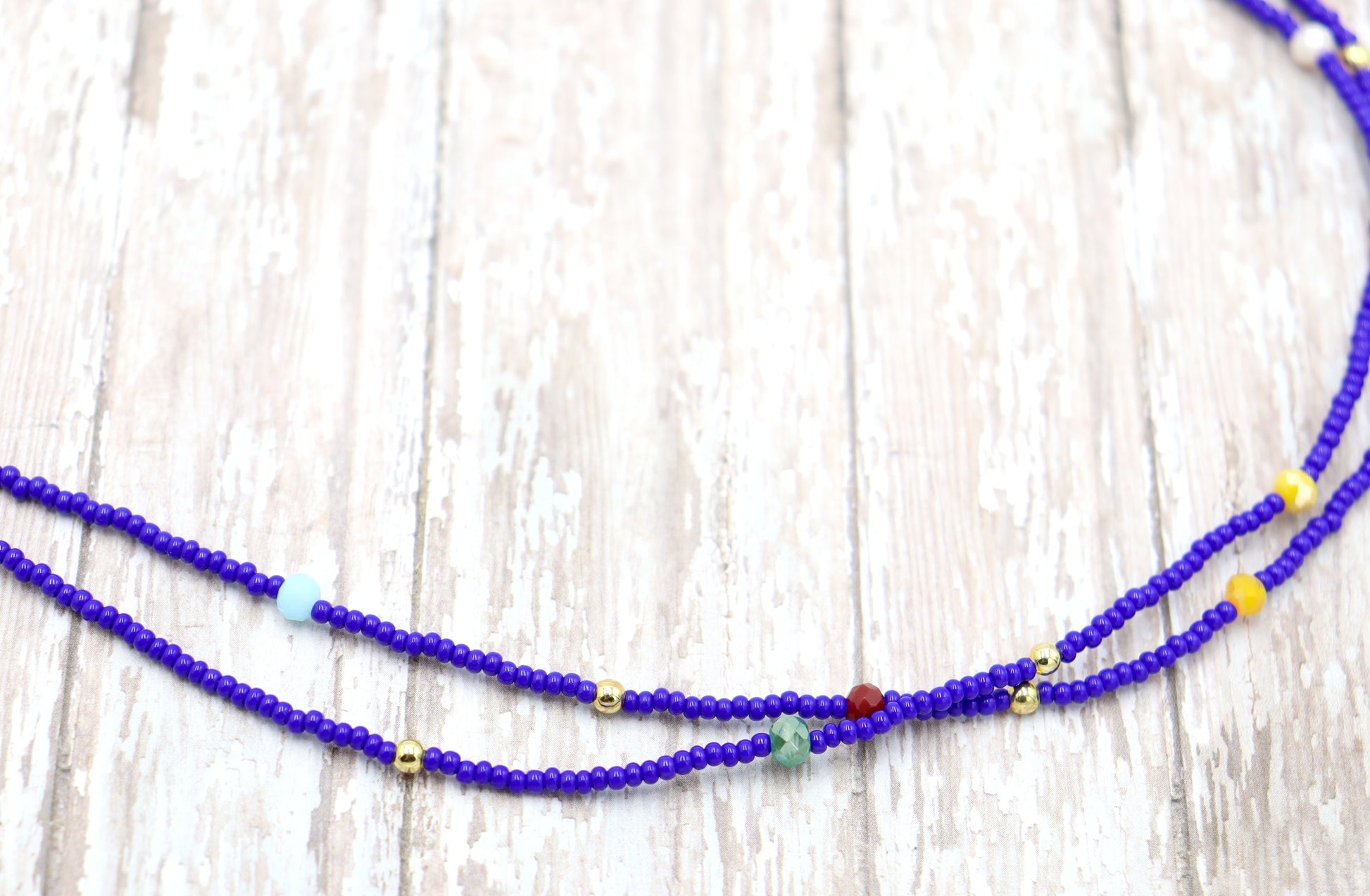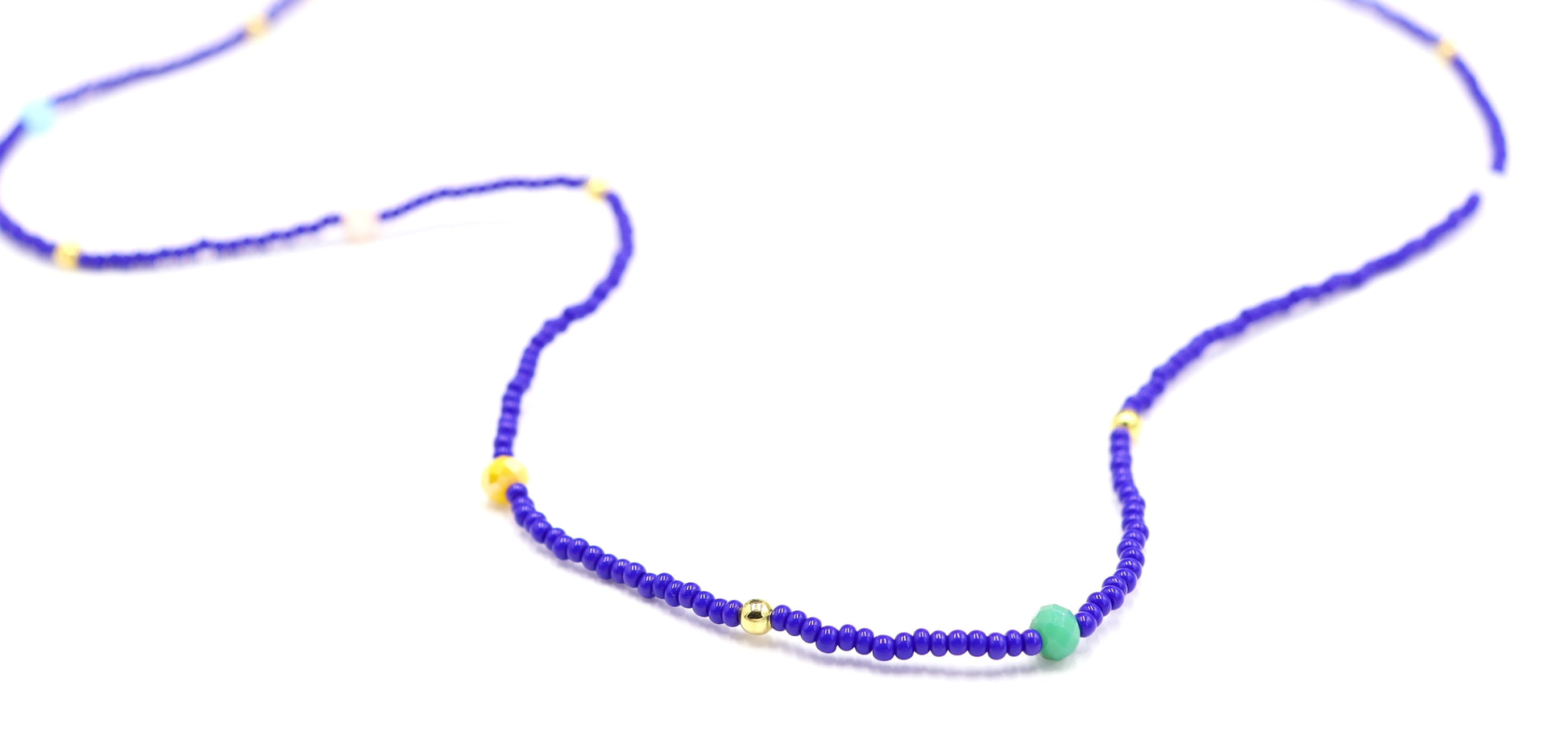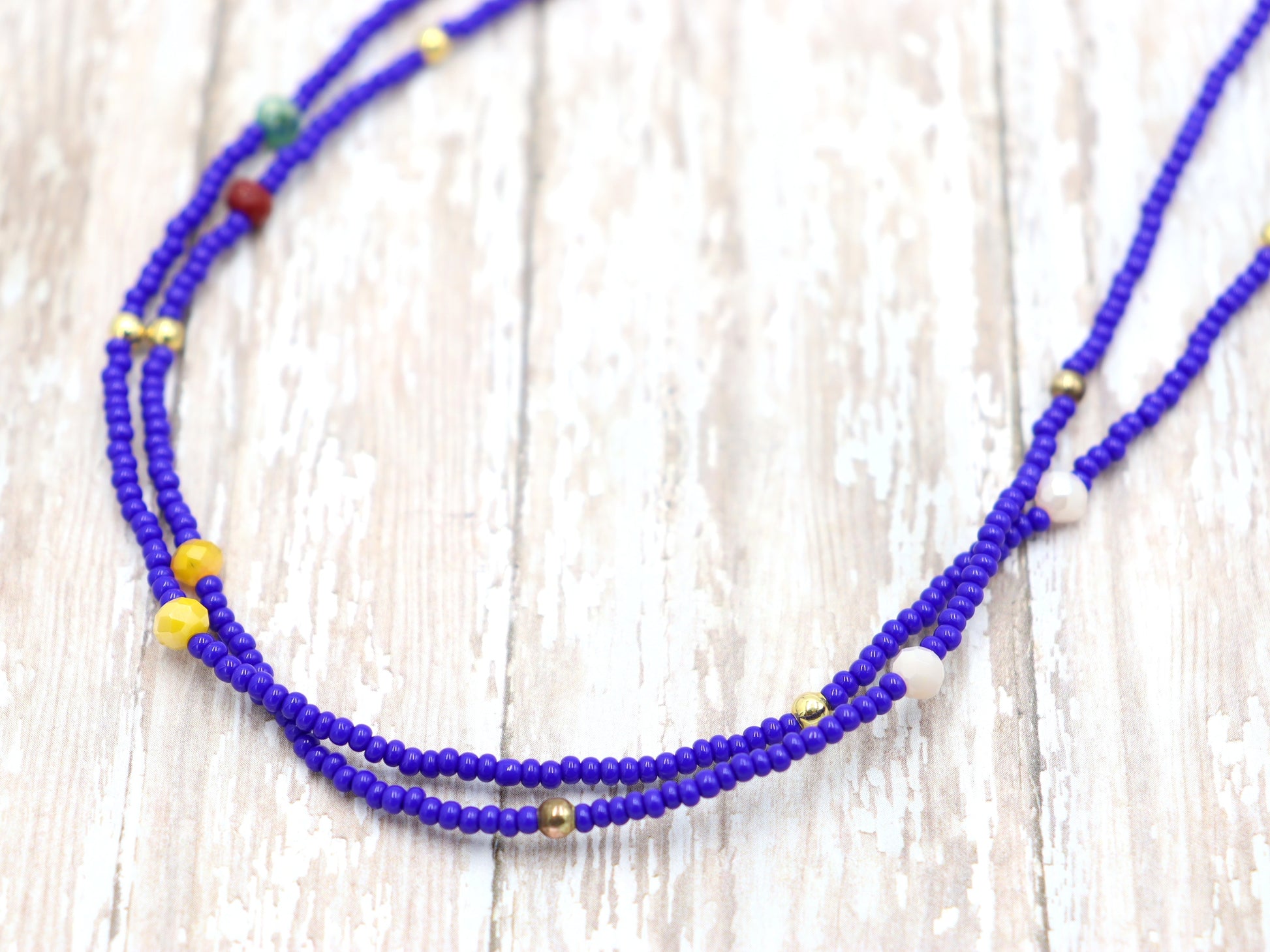Blue Skies and Faceted Orbs of Colorful Light Approximately 52" Long Women's Royal Blue Long Glass Necklace by Monkey's Mojo