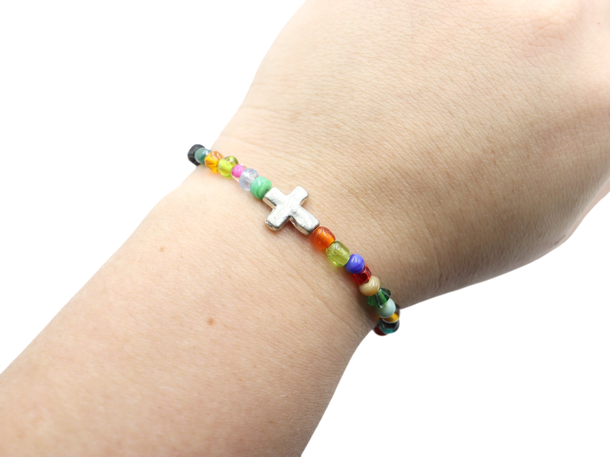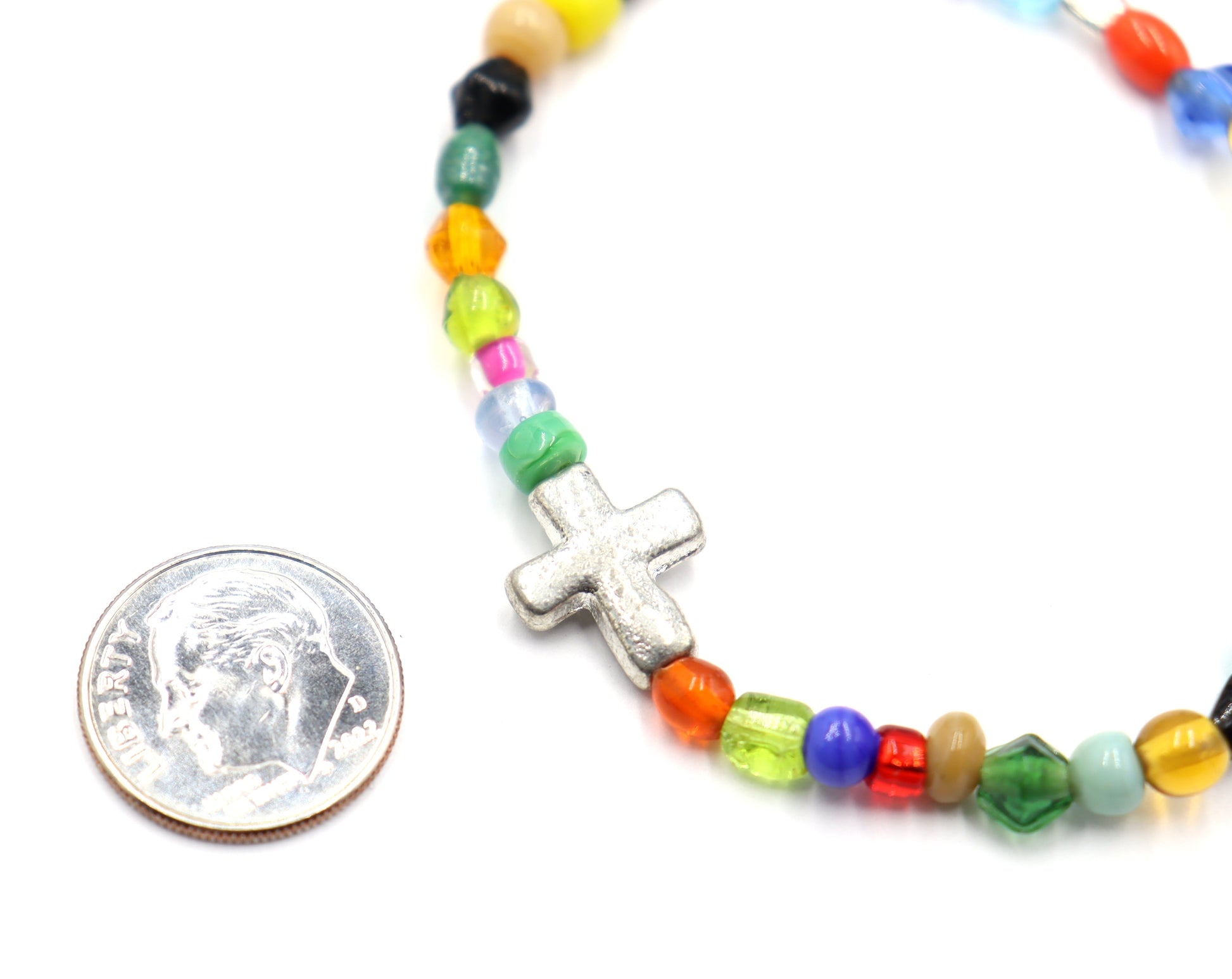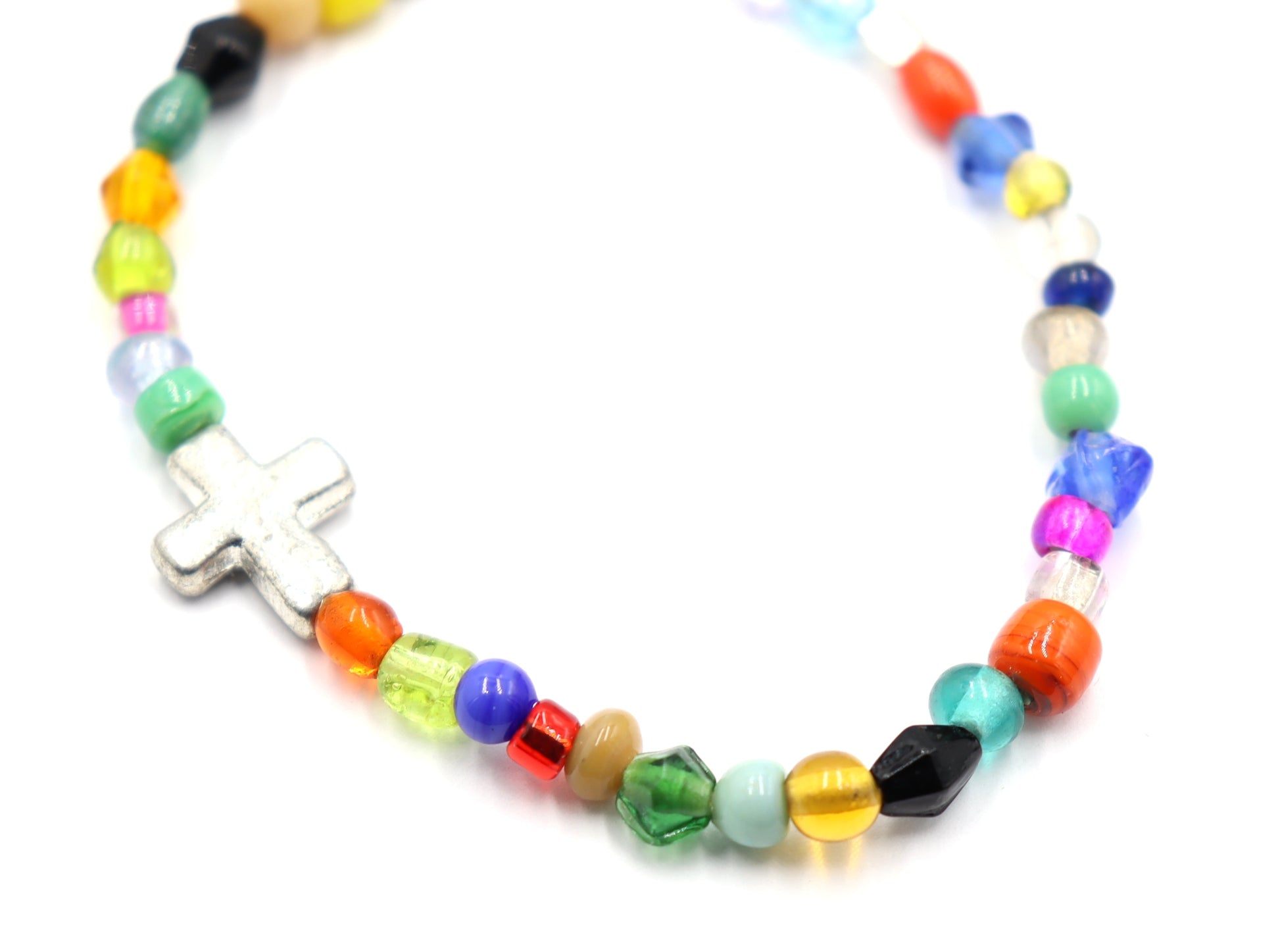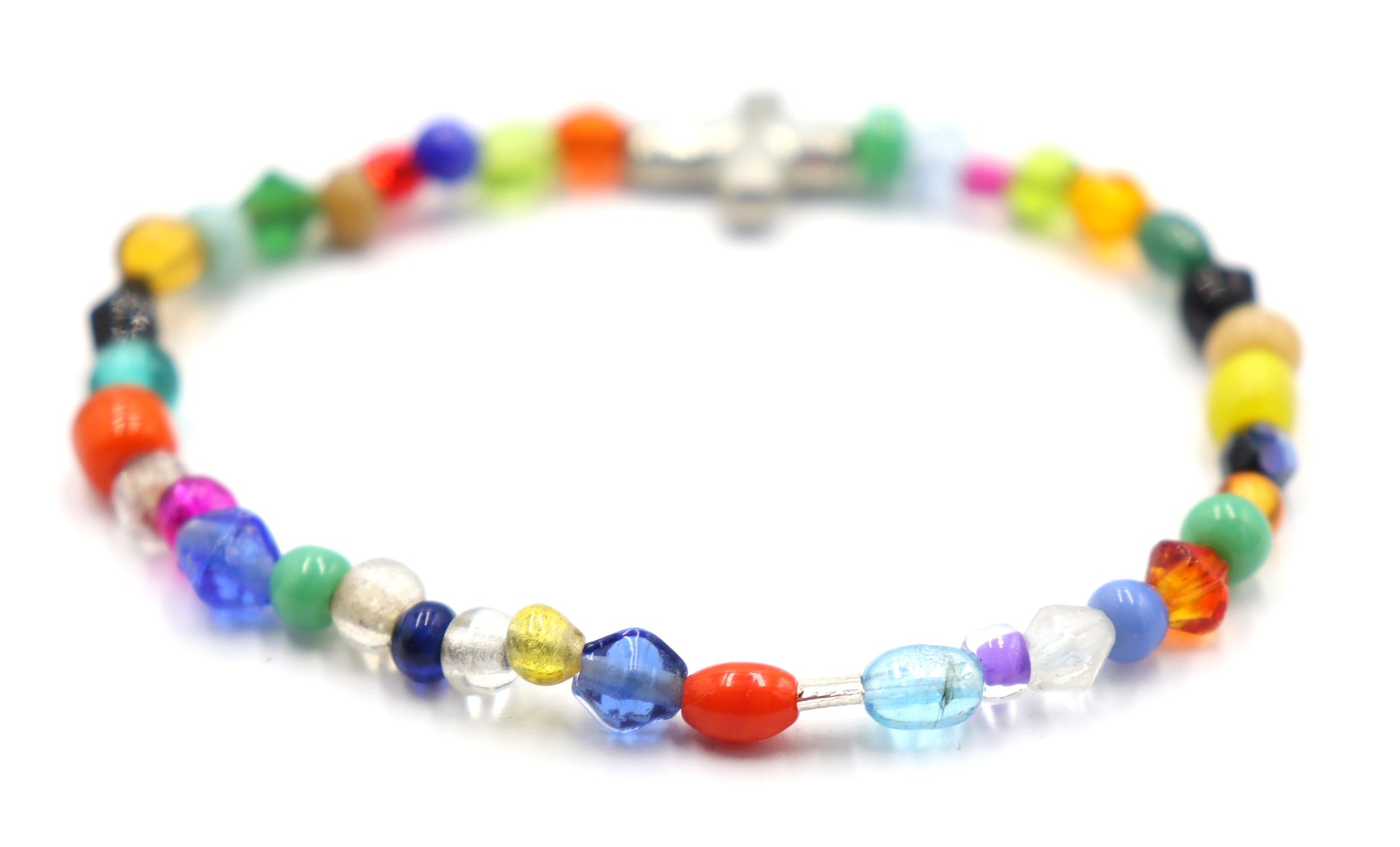 Colorful Joy Artisan Beads and Silver Metallic Cross Stretch Bracelet by Monkey's Mojo