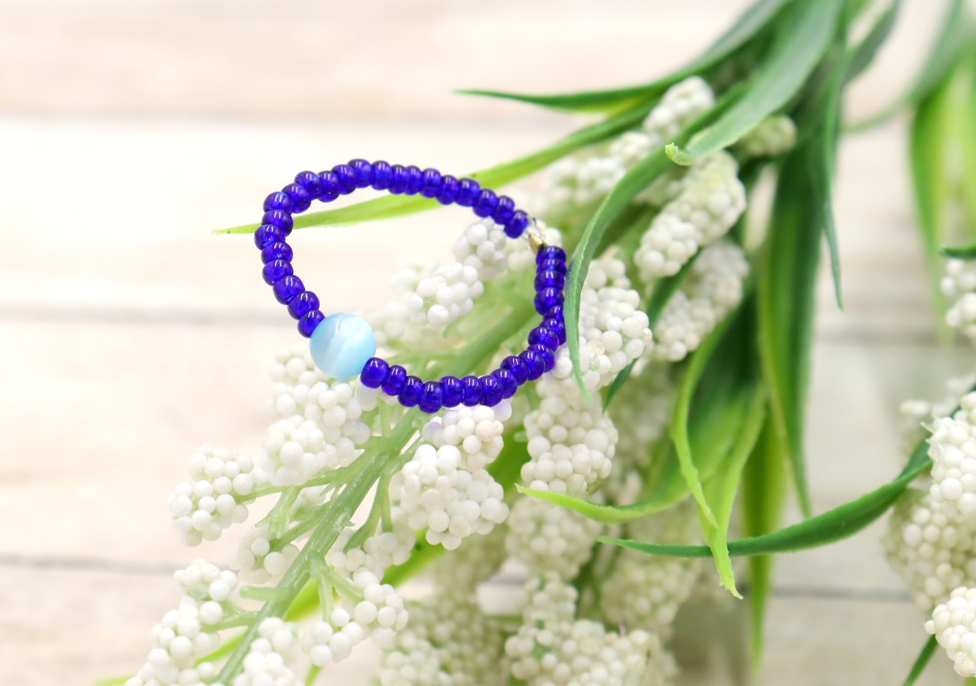 4.4mm Synthetic Light Blue Cat's Eye Glass Bead11/0 Royal Blue Czech Glass Beads