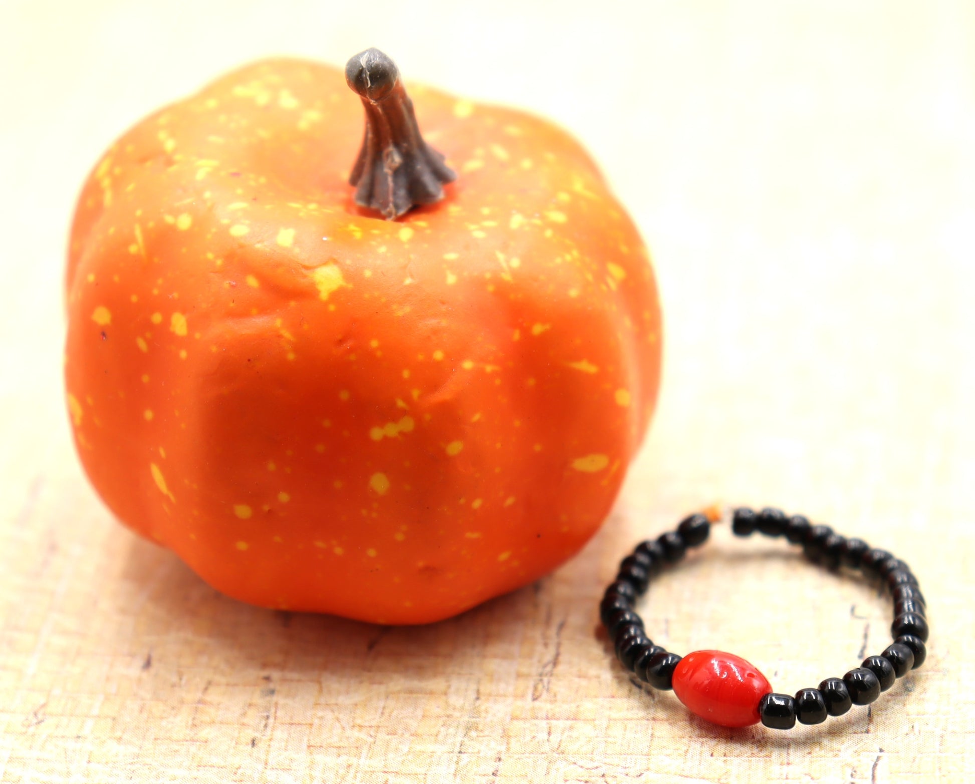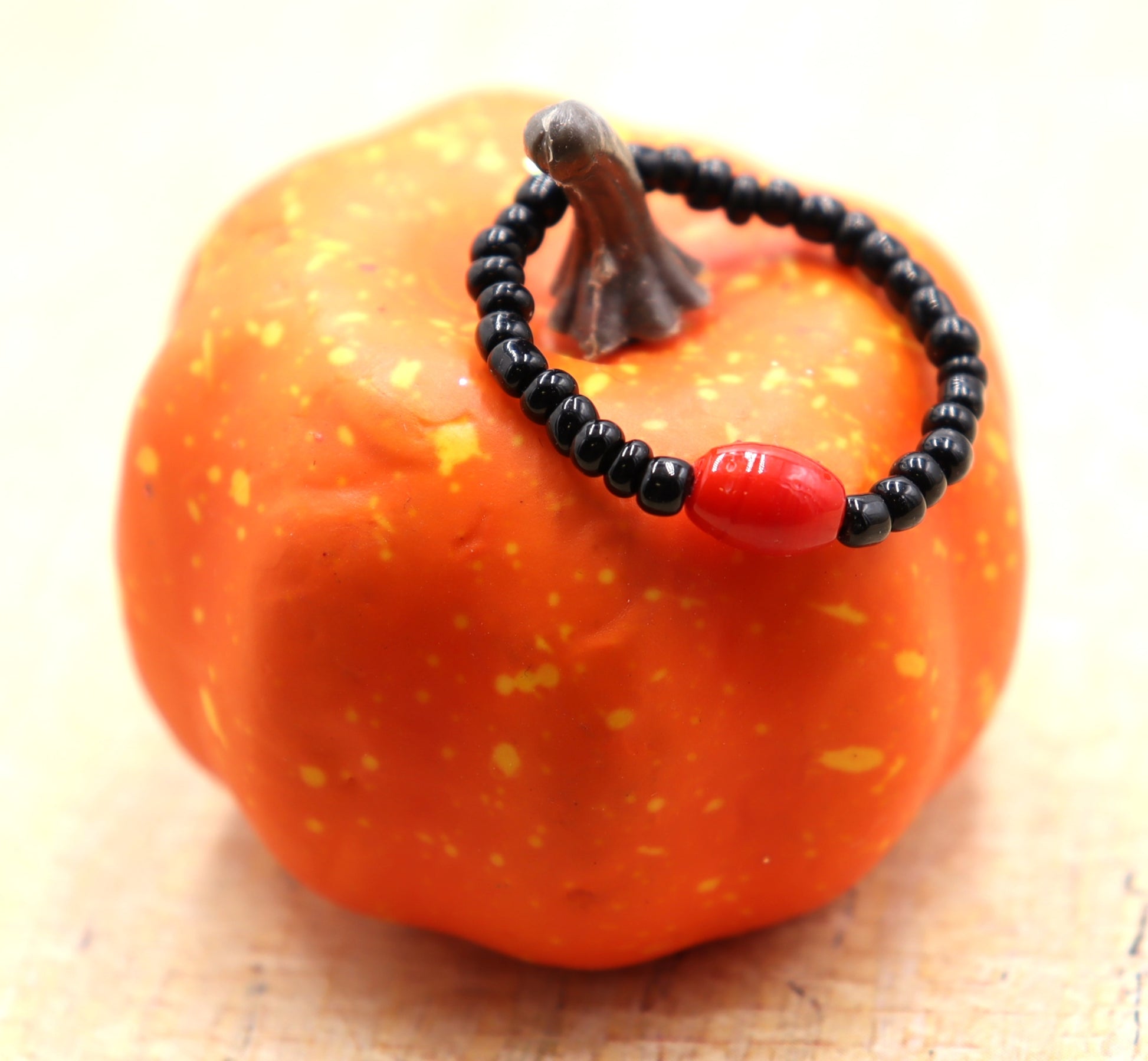 Happy Halloween Ring Classic Fun Orange and Black Stretch Glass Finger Ring by Monkey's Mojo