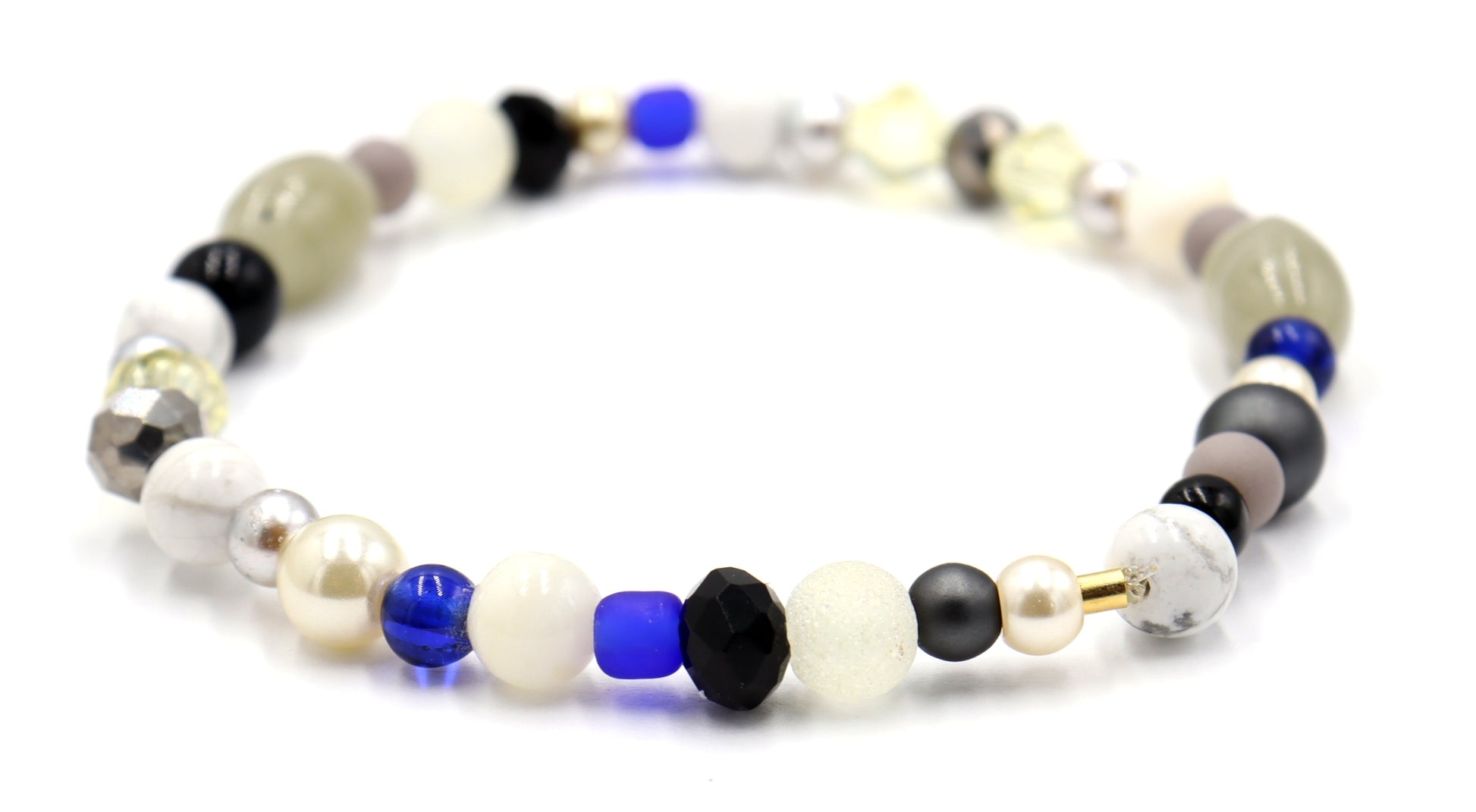 Here comes the OG Bride of horror in all her deconstructed glory. Introducing Here Comes the Bride of Frankenstein Deconstructed Avant Garde Halloween Bracelet by Monkey’s Mojo. White and grays to reflect this beautiful bride’s dress. Blue to reflect her undead, yet glowing skin. The yellow and silver for the bolts in her neck and the lighting in her veins.