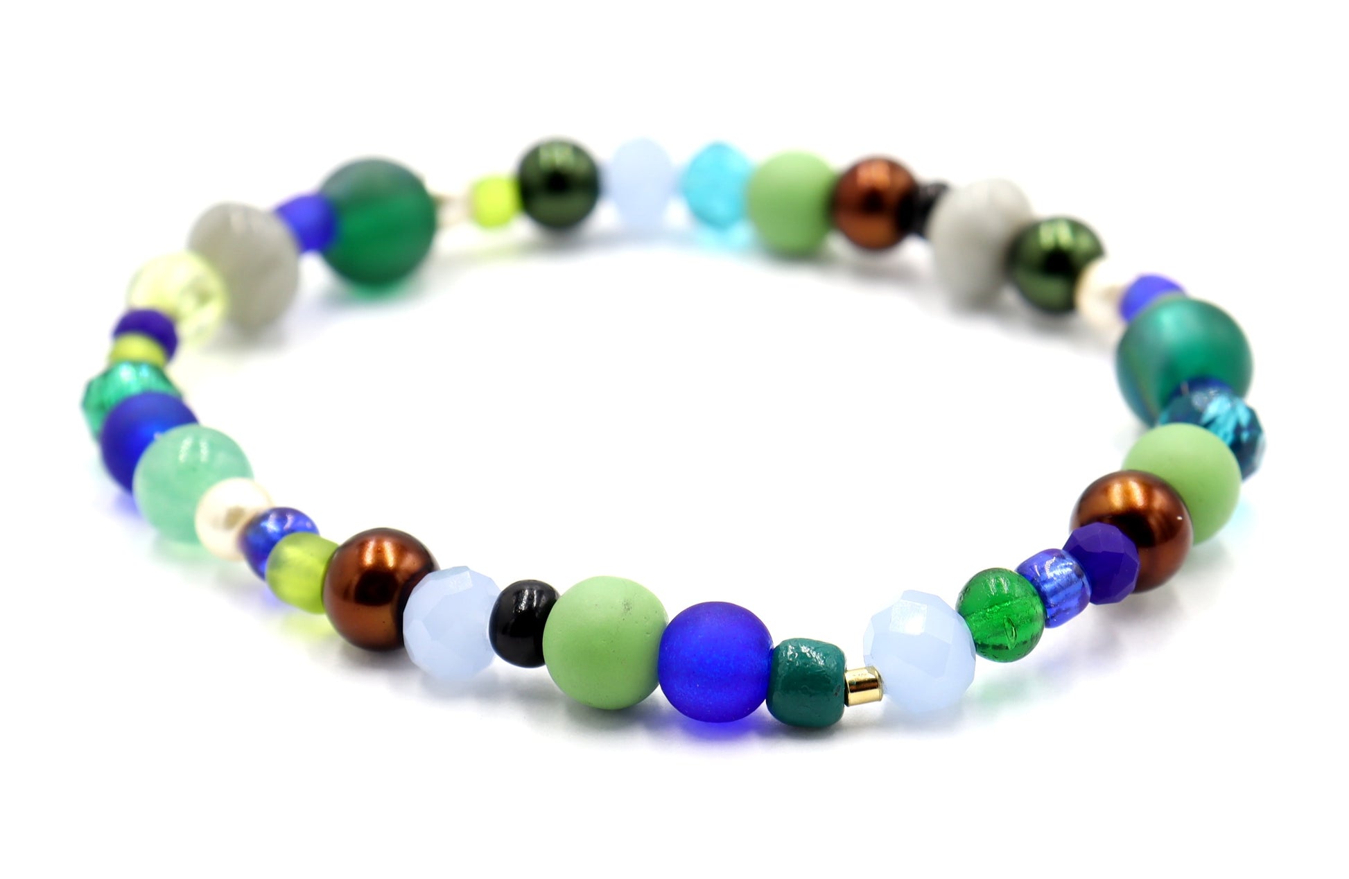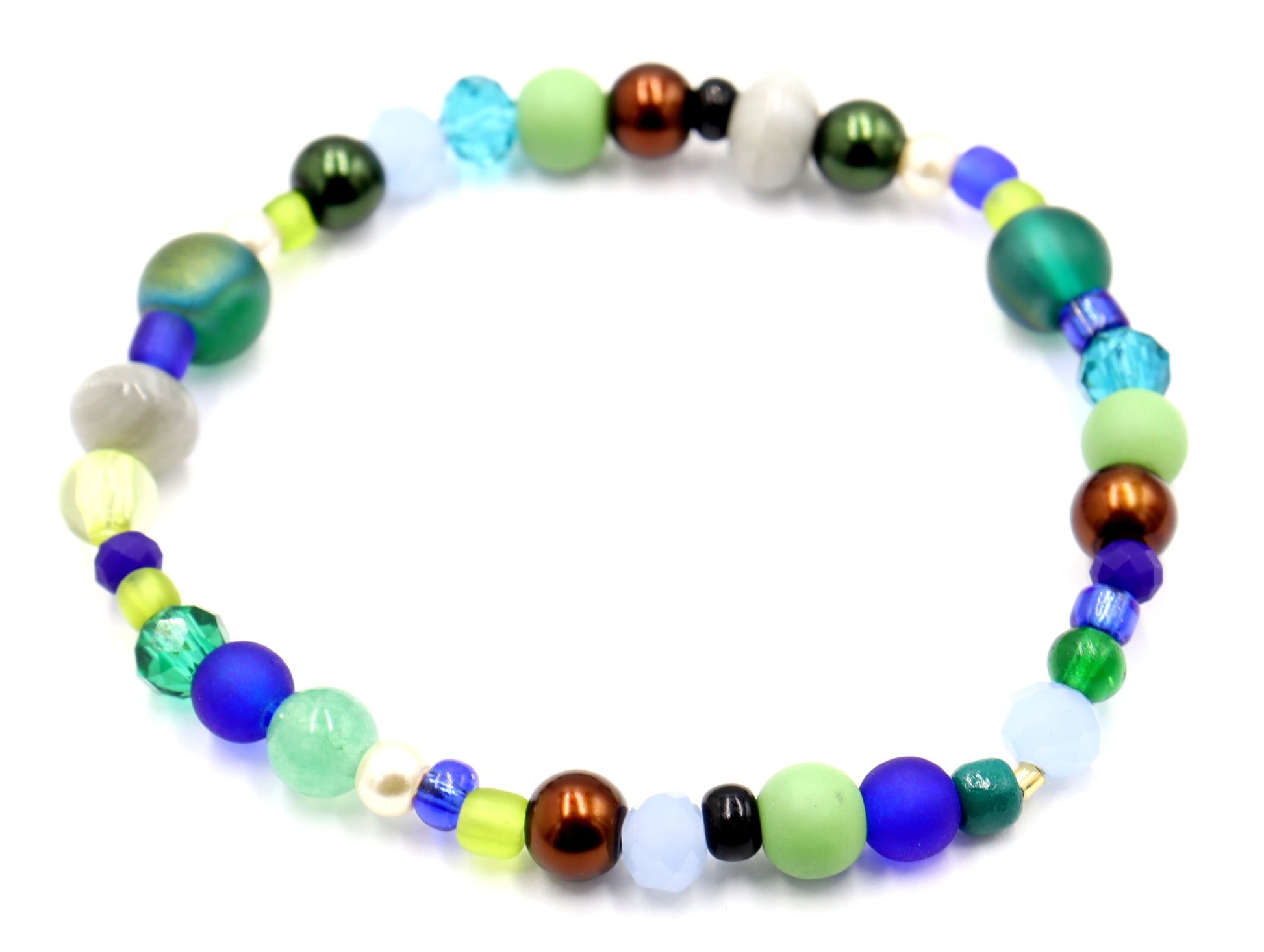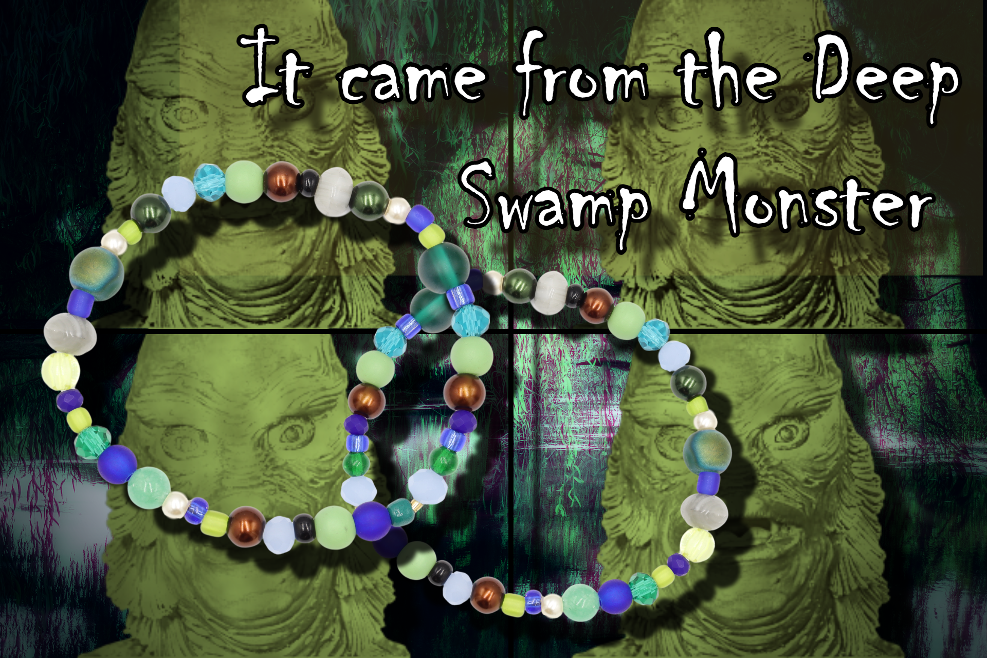 From the murky waters of a nearby swamp (if you’re in the south), comes the moist monster of your nightmares. Introducing It Came from the Deep Swamp Monster Deconstructed Avant Garde Halloween Bracelet by Monkey’s Mojo. Greens and browns reflect both this monster of nature’s habitat and body. Blues and greys for the waters in which he swims.