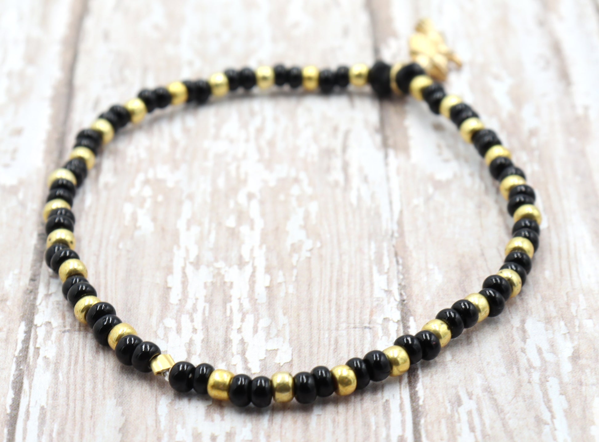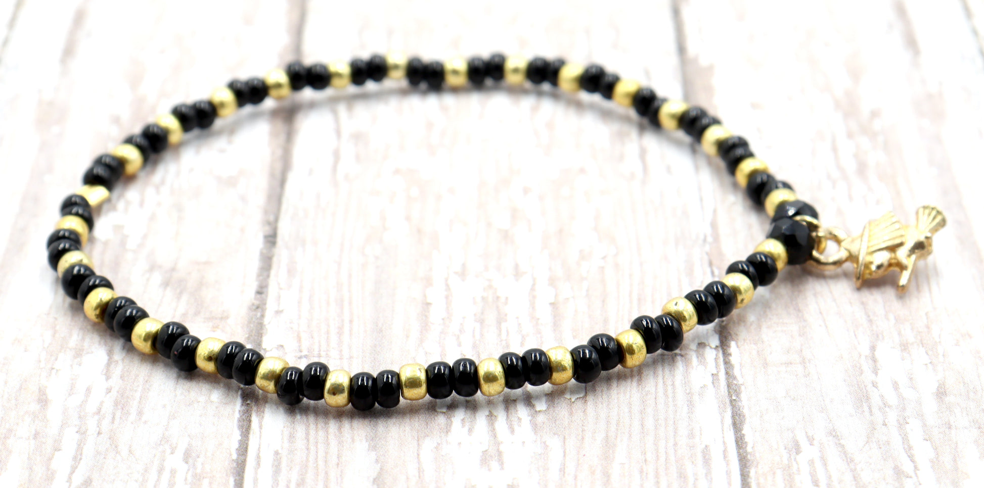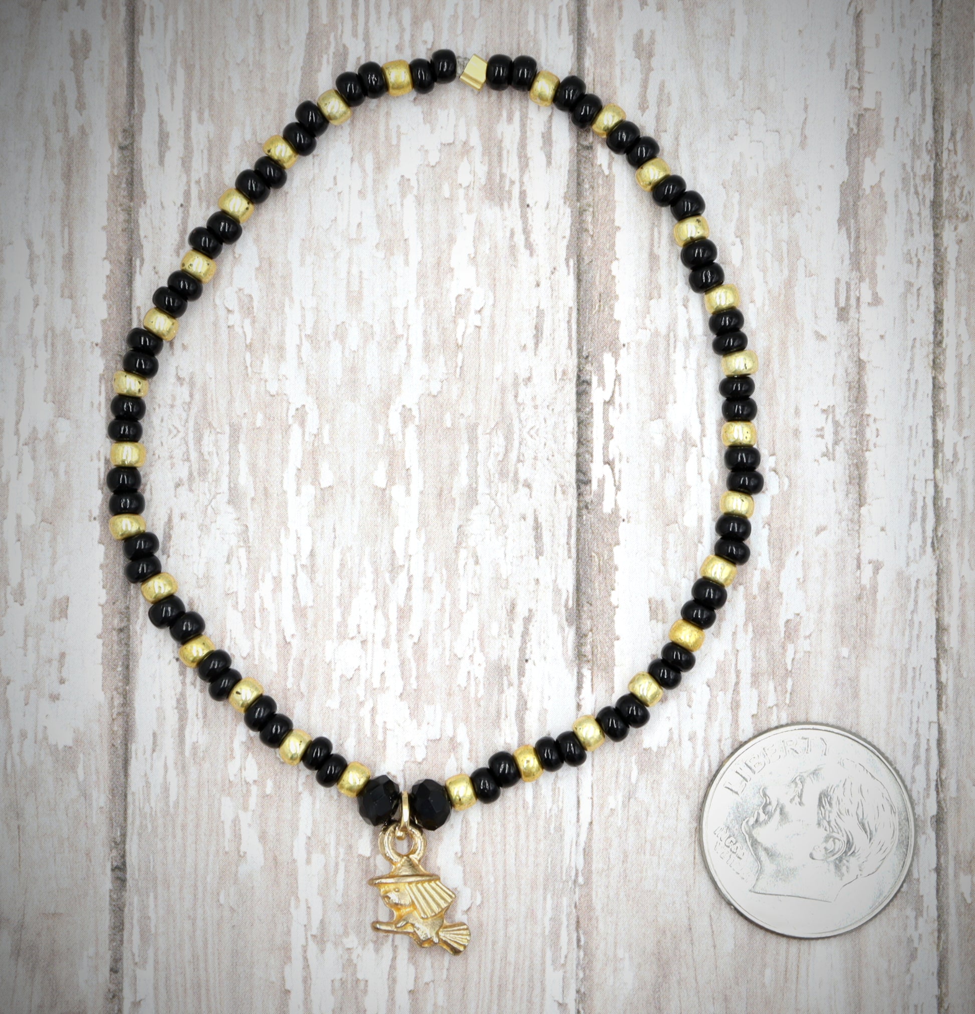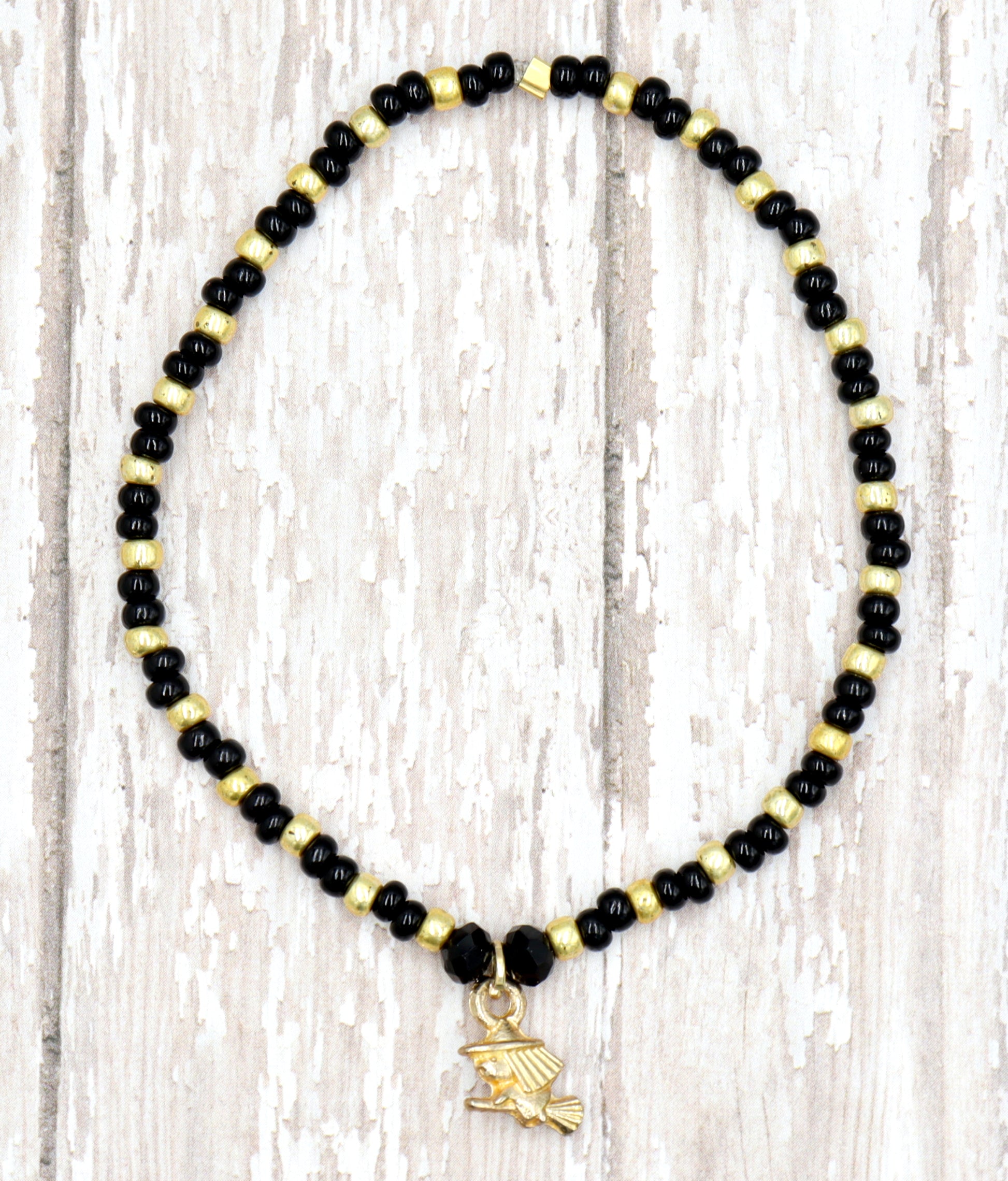 Little Wicked Witch Flying on a Broom Black and Gold Halloween Stretch Bracelet by Monkey's Mojo