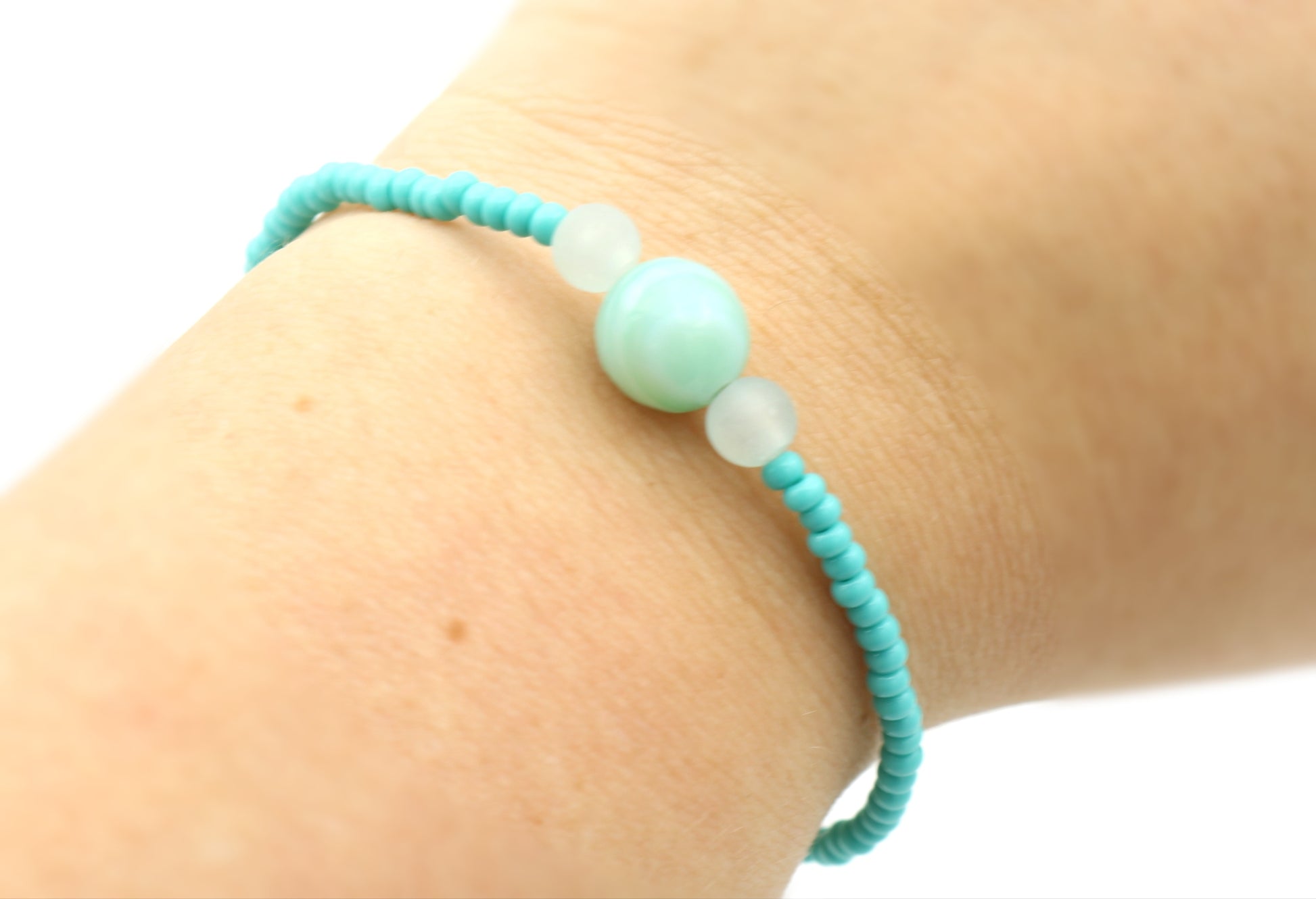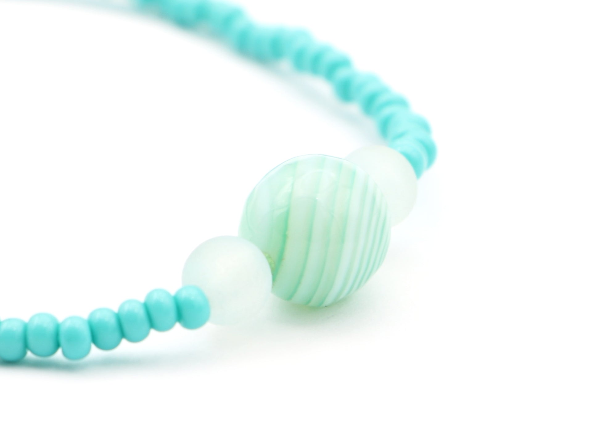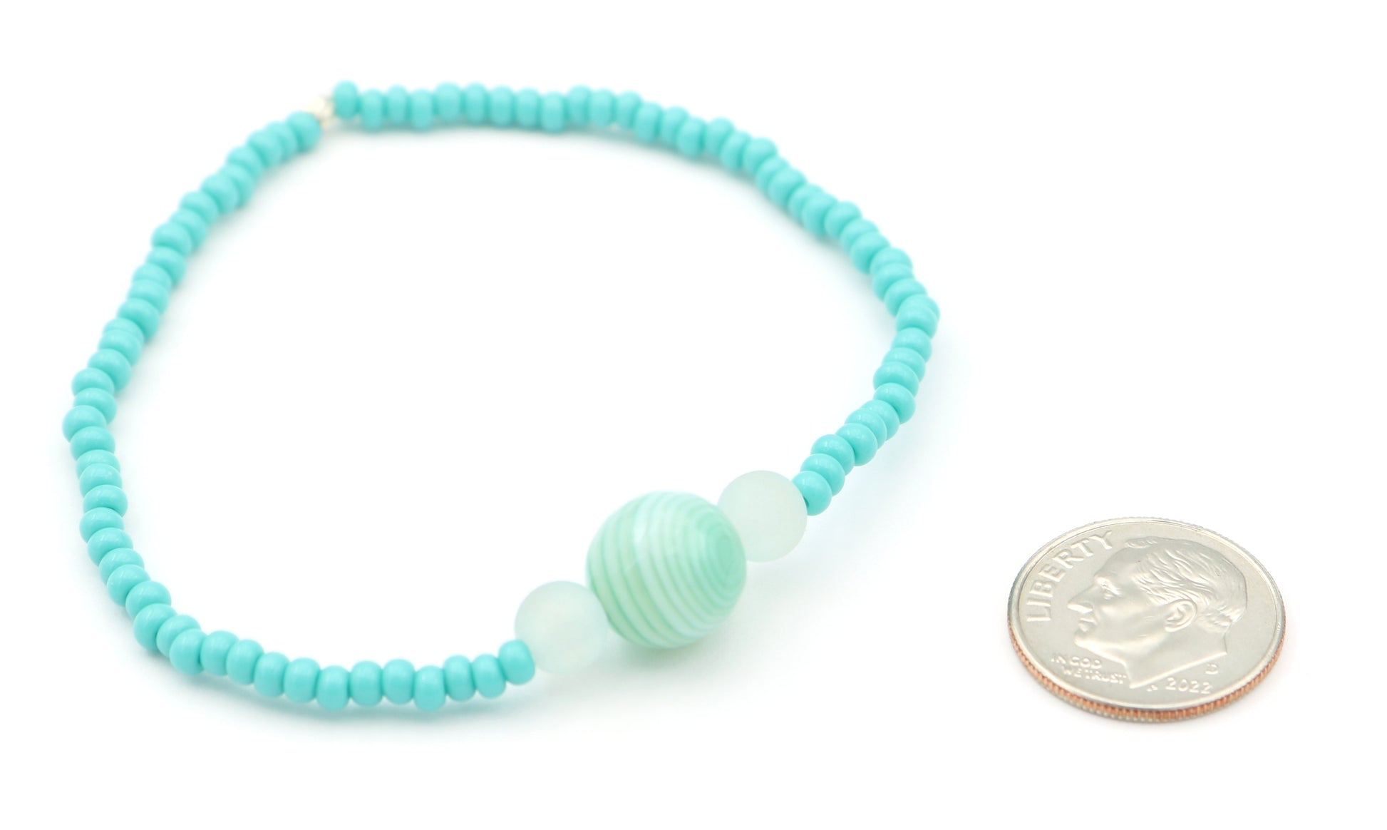 Oceanic Lollipop Swirl - Summer Fun - Light Blue Glass Stack Stretch Bracelet by Monkey's Mojo