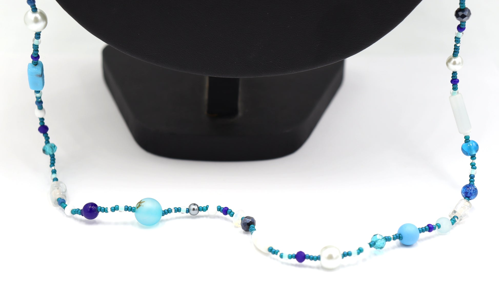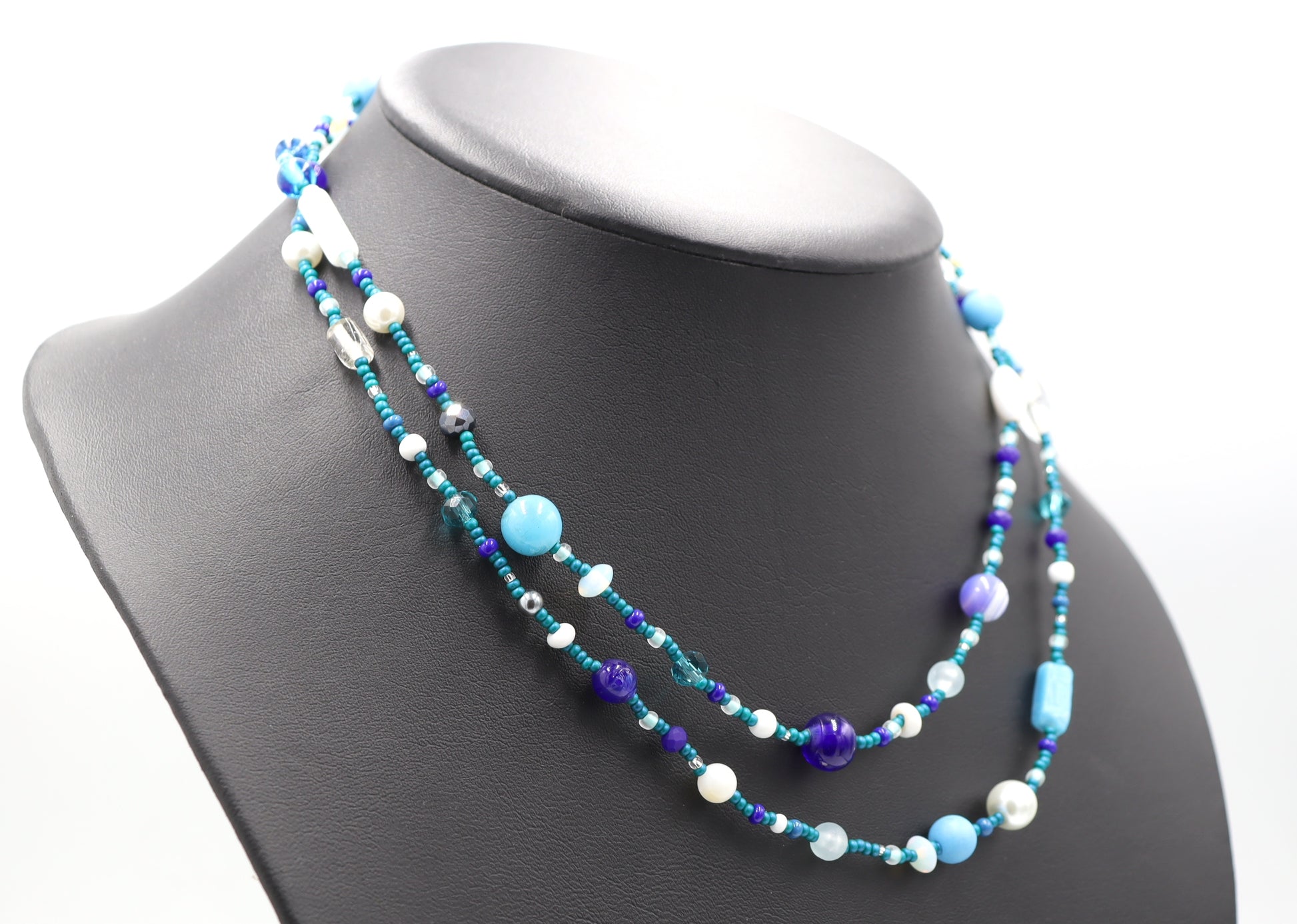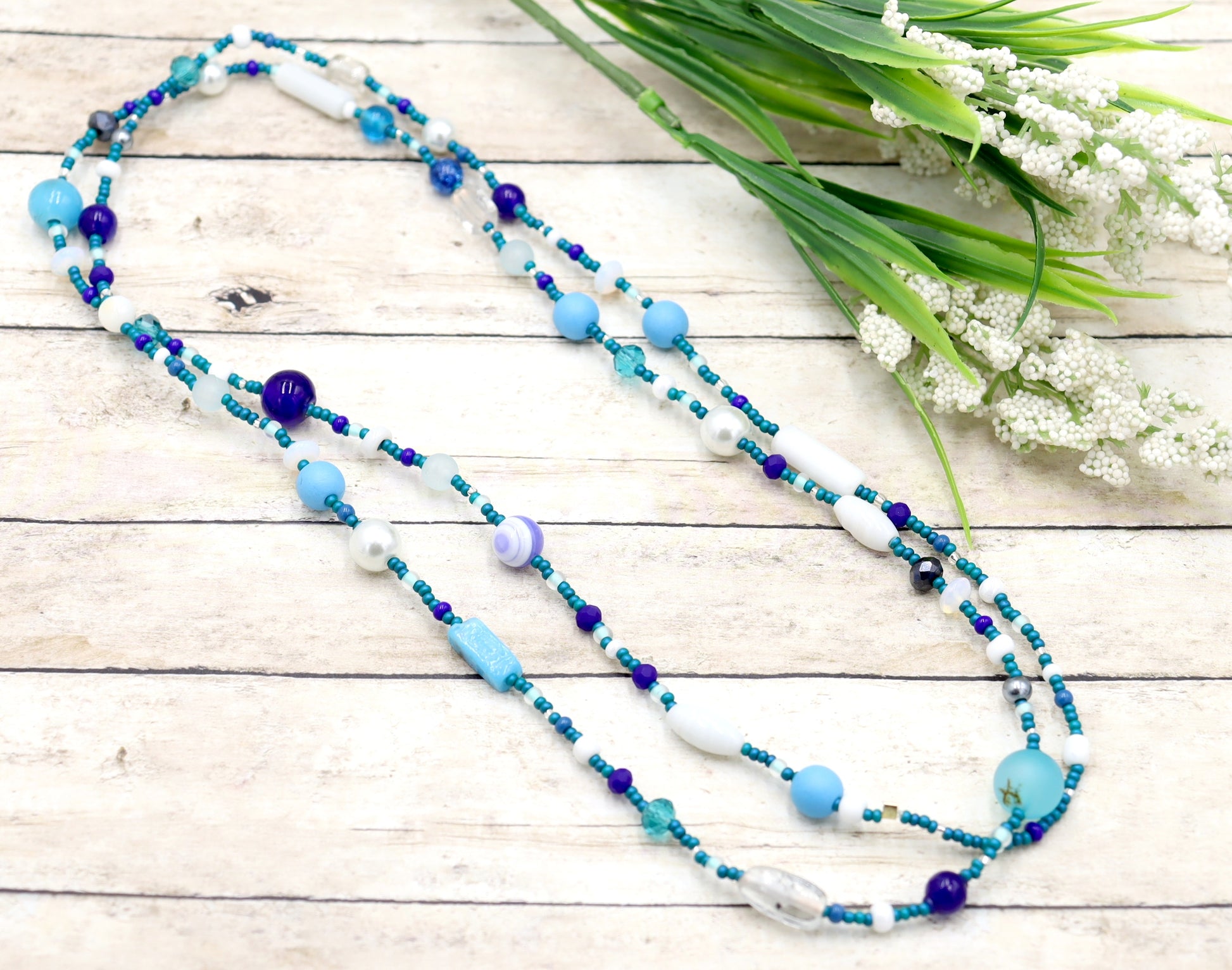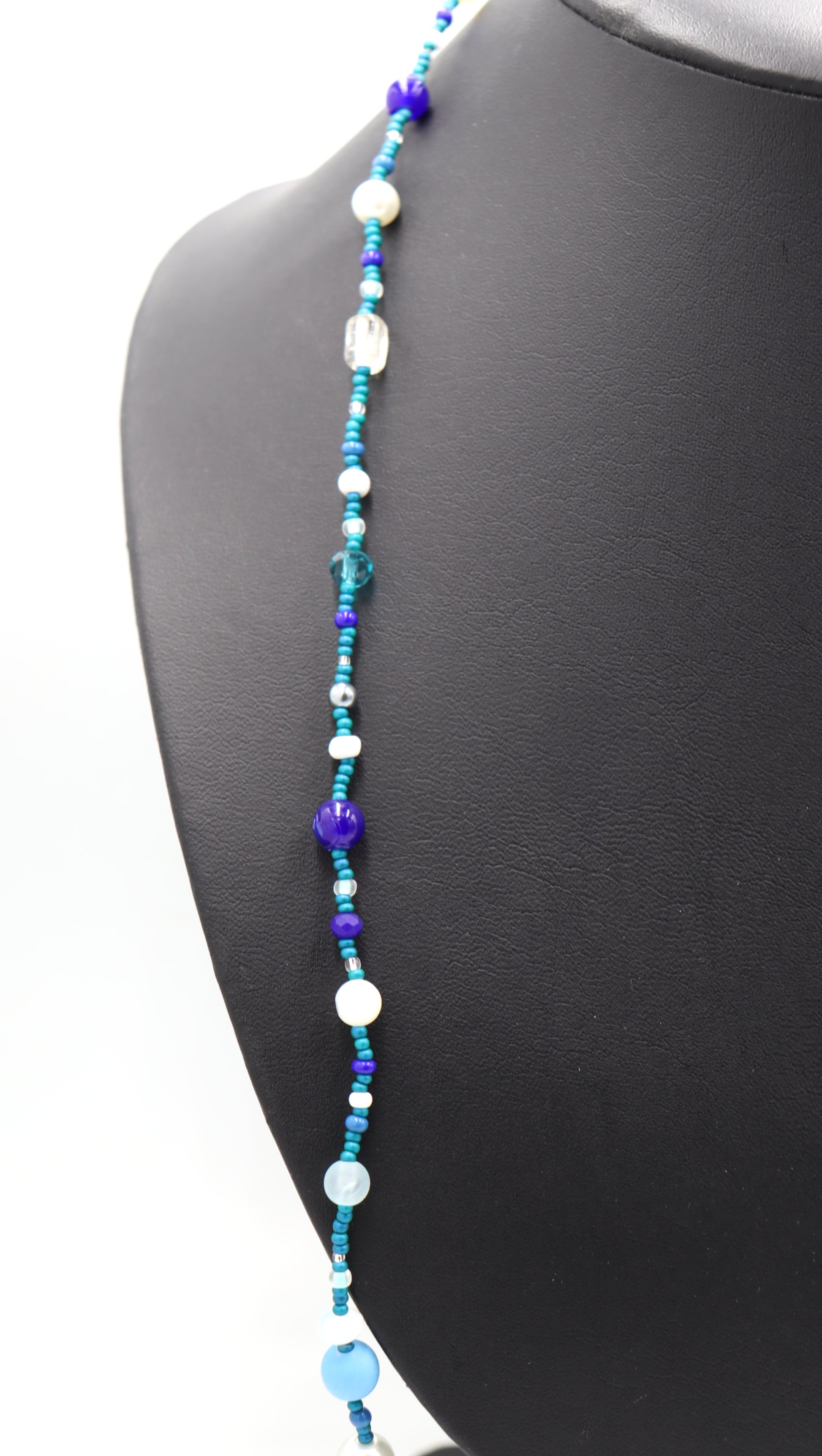 This Necklace with Blue You Away – Blue and White 38” Long Party Necklace by Monkey’s Mojo