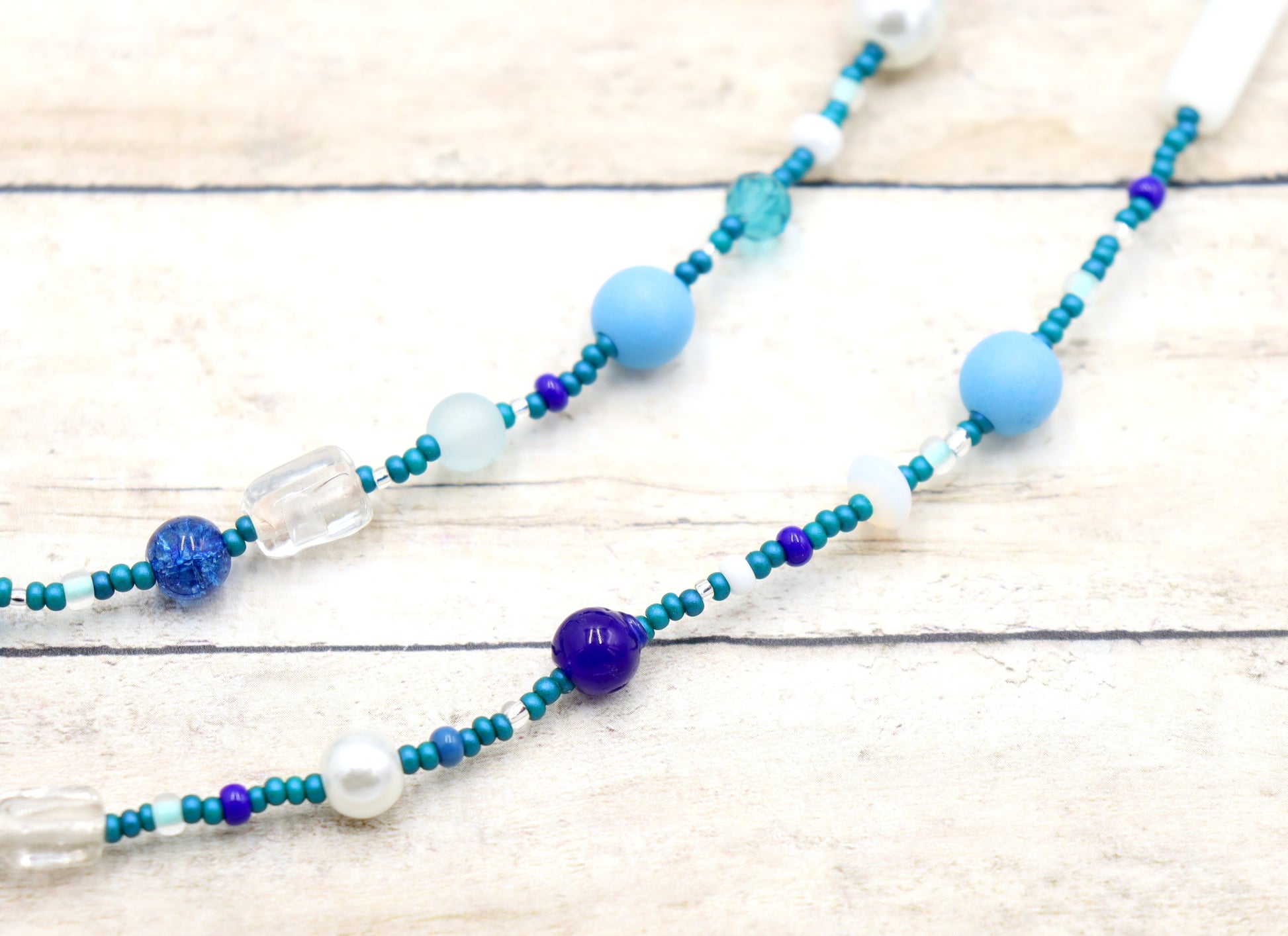 8/0 Assorted Aqua, Blue, and White Beads