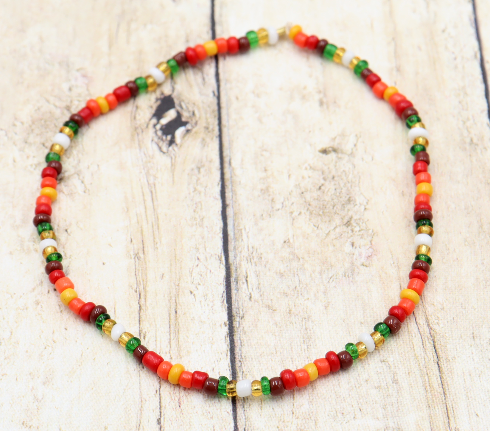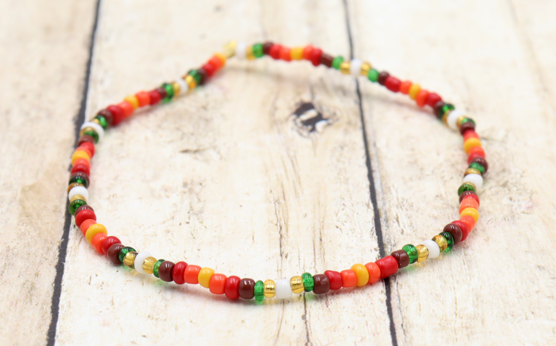 Happy Fall Y'all! Celebrate the American holiday of food engorgement and thankfulness with this bold hued and fall colored stack bracelet.