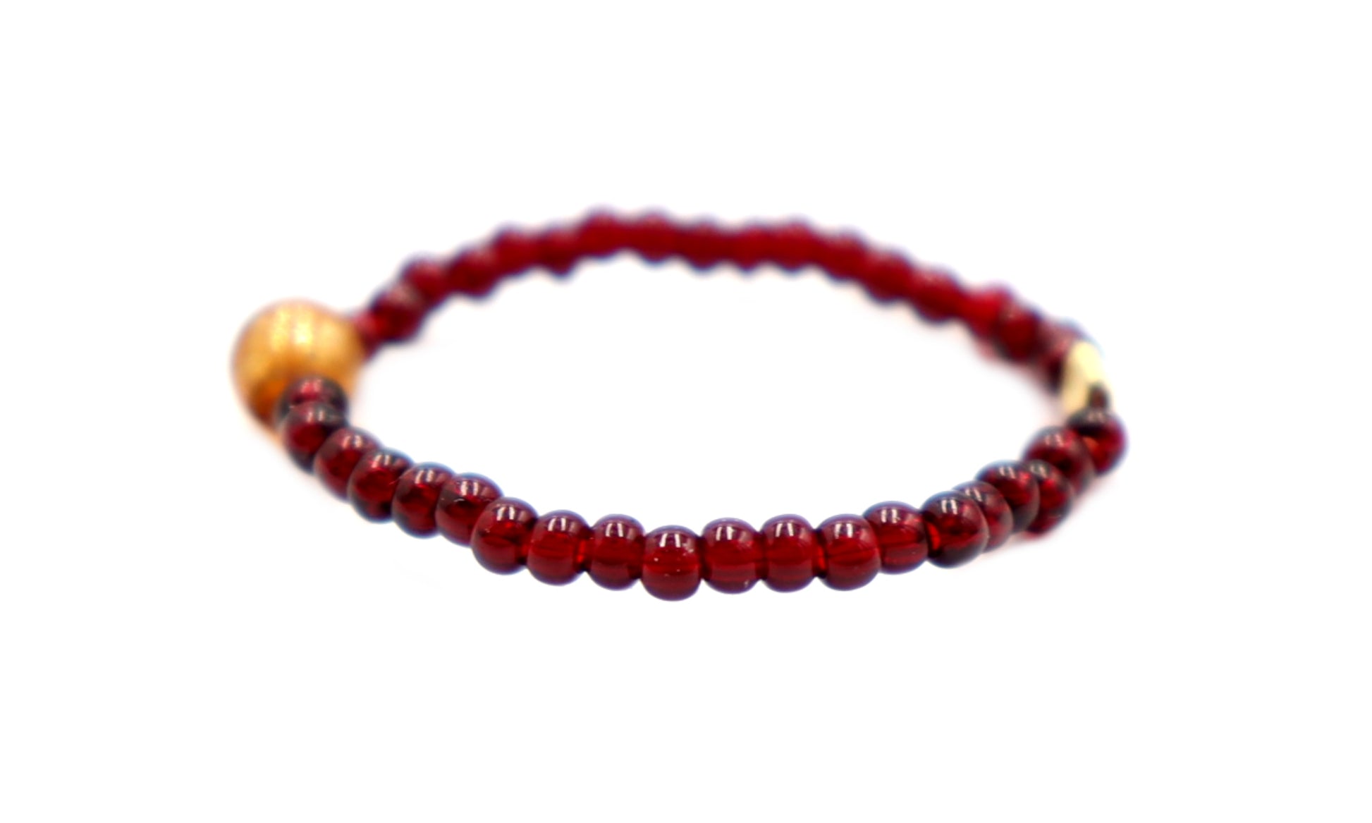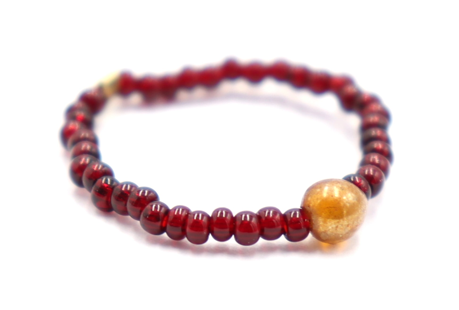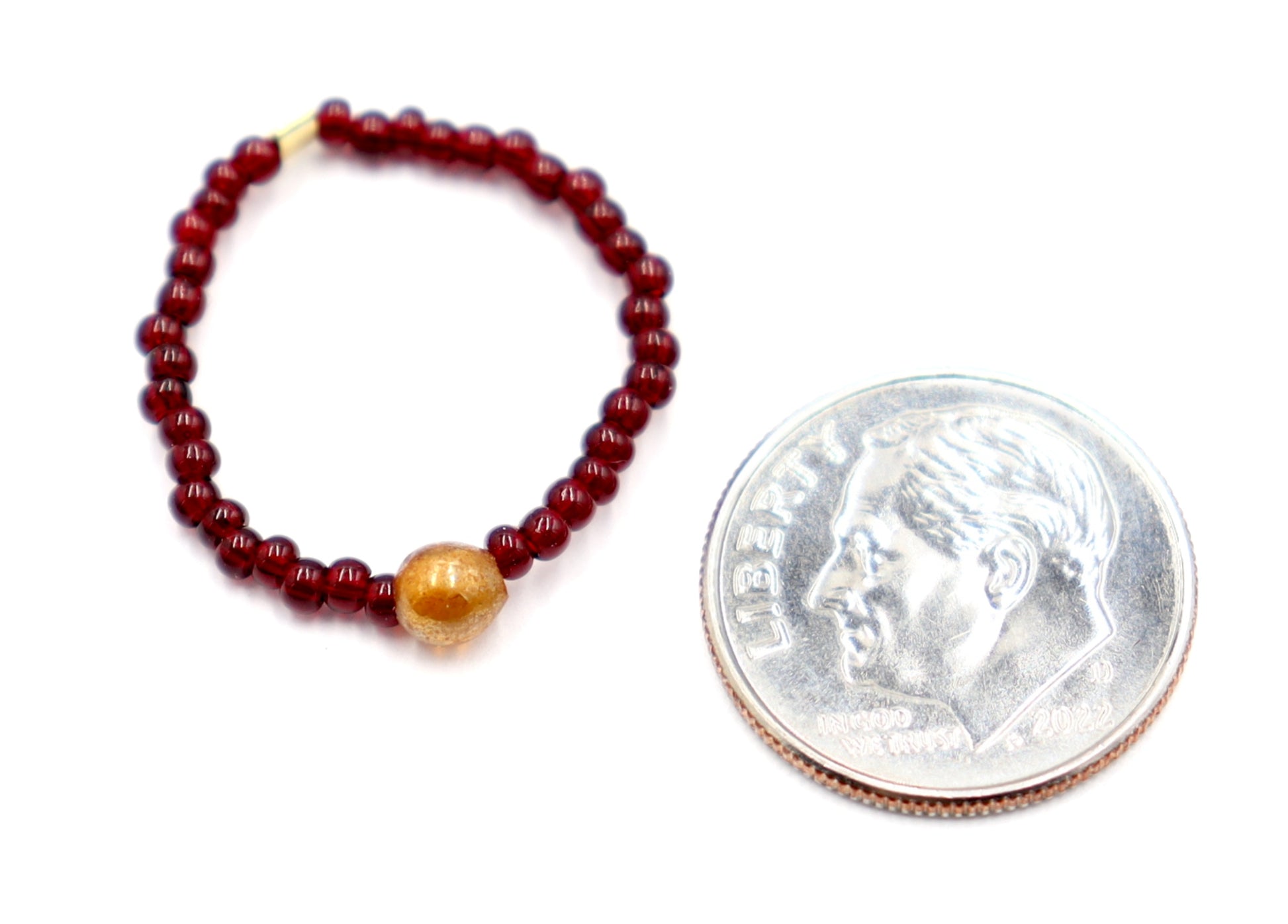Vampire's Blood and Golden Ball Ring Garnet Red and Iridescent Glass Stretch Ring by Monkey's Mojo