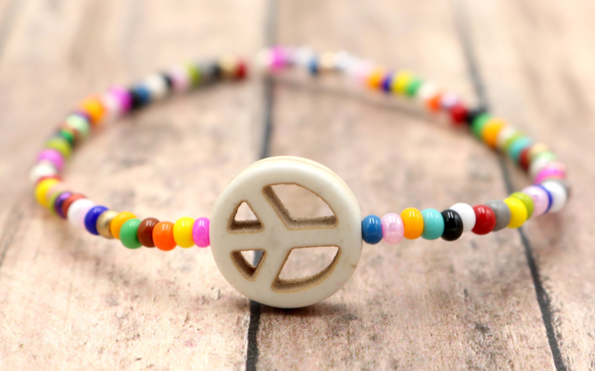Holler For Howlite Dove White Peace Be to You Assorted Seed Bead Glass Bracelet by Monkey's Mojo